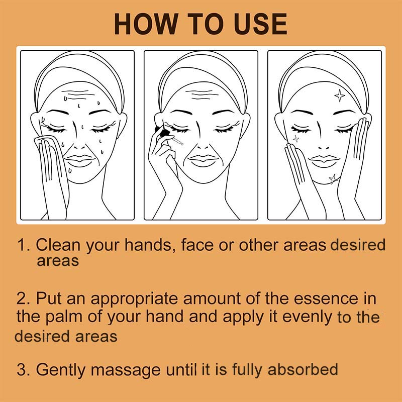 LÀgg en lÀmplig mÀngd essens i handflatan och applicera jÀmnt.