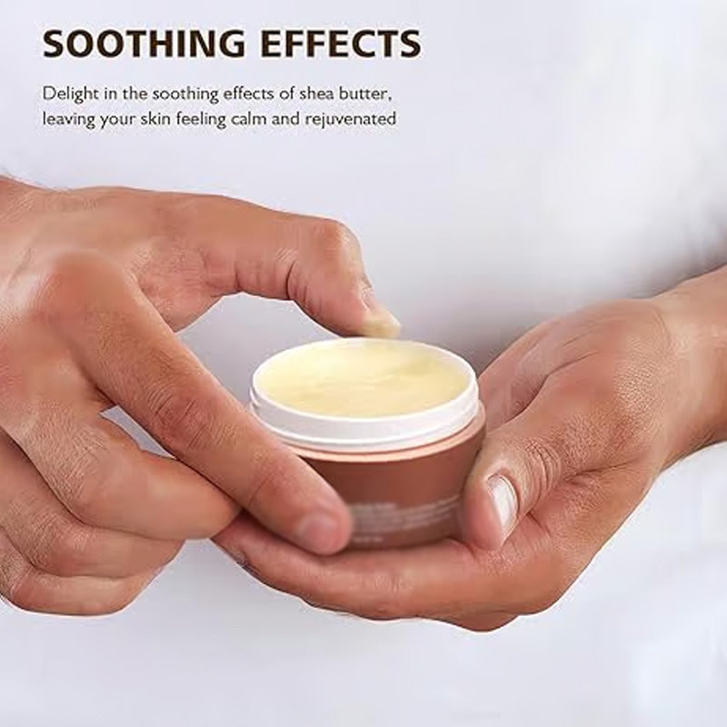 LUGNANDE EFFEKT – Med sin varma och charmiga doft kan du njuta av sheasmörets lugnande effekt, som får dig att känna dig uppfriskad och självsäker hela dagen. Det är mer än bara hudvård – det är ett oemotståndligt val för din dagliga rutin.