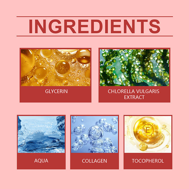 Ingredienser: Vatten, Glycerin, Chlorella Extrakt, Kollagen, Vitamin E
