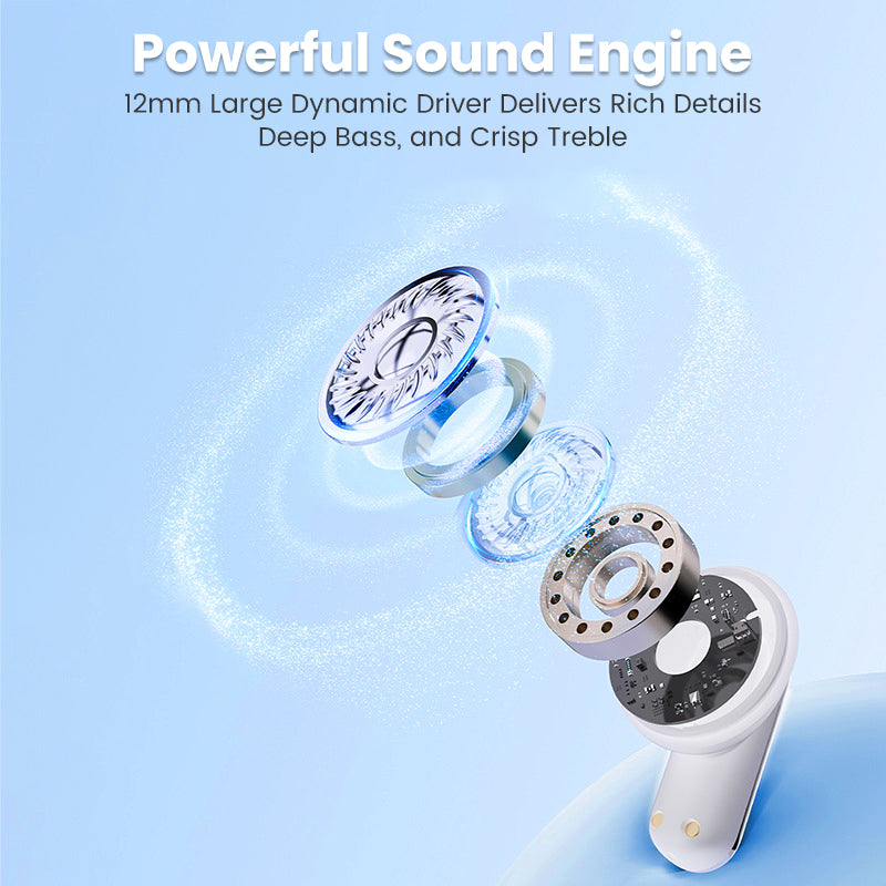 OMSLUTANDE STEREOLJUD: Hör varje detalj med de stora 12 mm dynamiska högtalarelementen. Denna konfiguration levererar fyllig bas, klara höga toner och en bred ljudbild, vilket skapar en omslutande ljudupplevelse för all din musik och media.