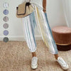 Randiga byxor i linnebomull för kvinnor
